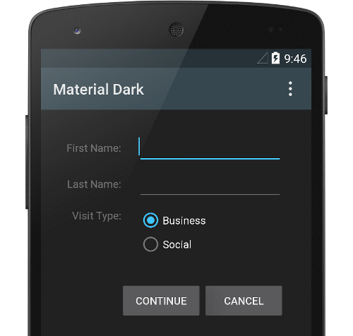 Note: Material 主题只支持 Android 5.0 (API level 21) 及以上版本。v7 Support 库提供了一些组件的 Material Deisgn 样式,也支持自定义调色板。更多信息,请参见维护兼容性章节。
